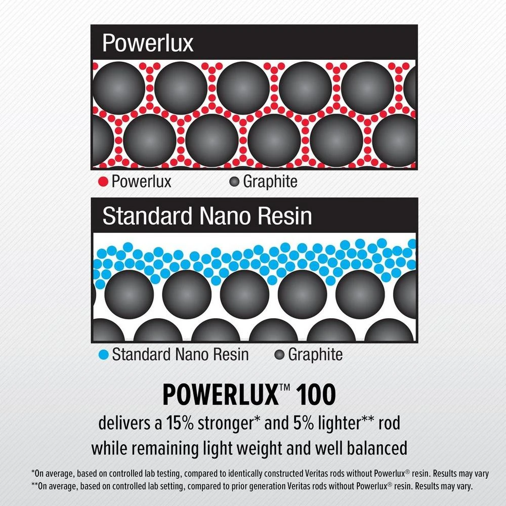 - The lightweight and balanced Veritas Spinning Rod is made from the 15% stronger and 5% lighter Powerlux 100 rod blank. Ergo reel seat and Robotically Optimized Casting System Guide Train with titanium alloy guides, for maximum casting distance.