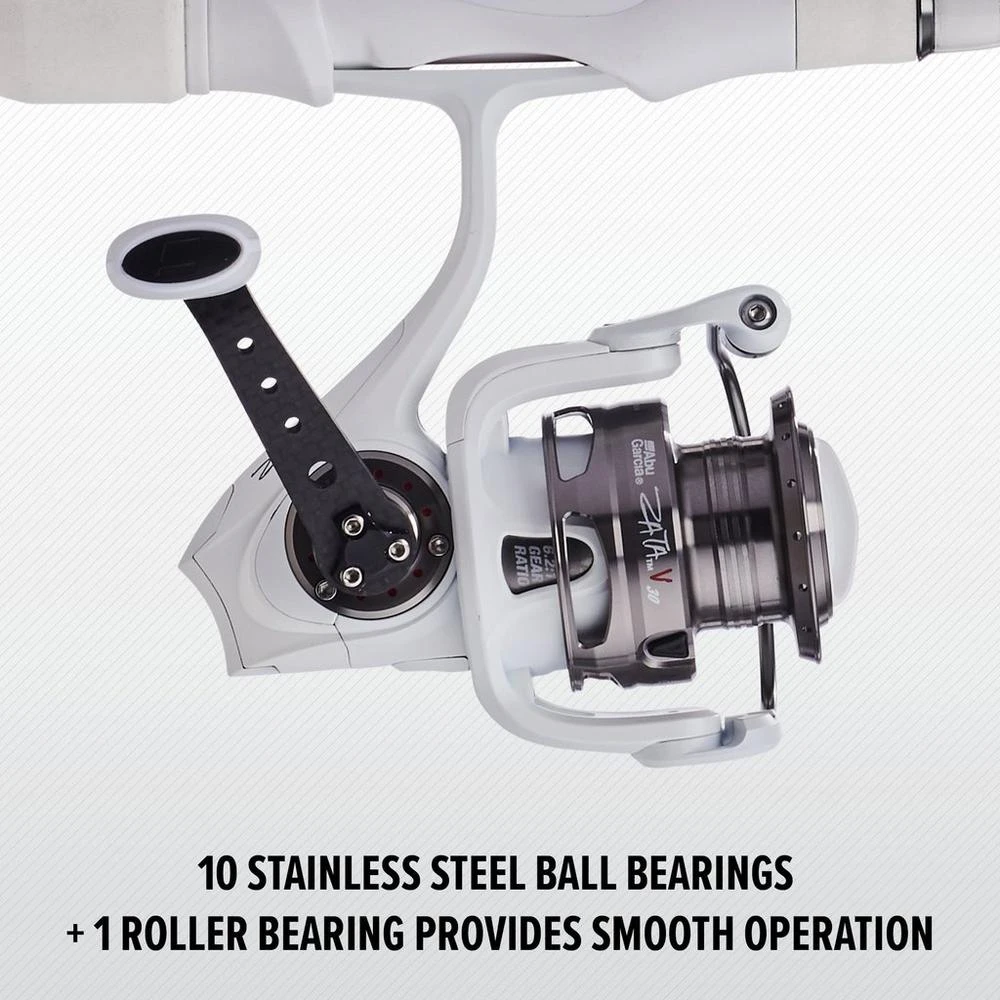 - The Abu Garcia Zata V spinning reel is smooth as silk with 10 BB and 1 RB bearings. Lightweight aluminum frame with the Rocket Line Management System and the Rocket Lip gives you pro-level line control with a braid-ready direct-tie spool