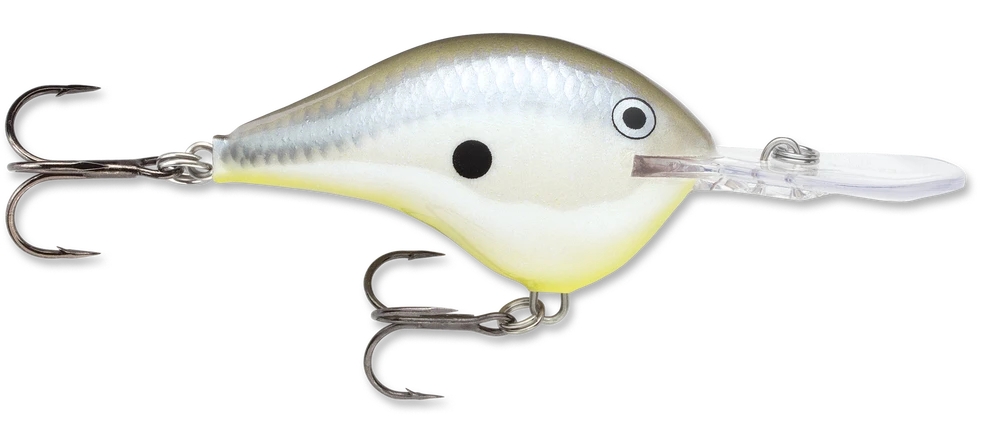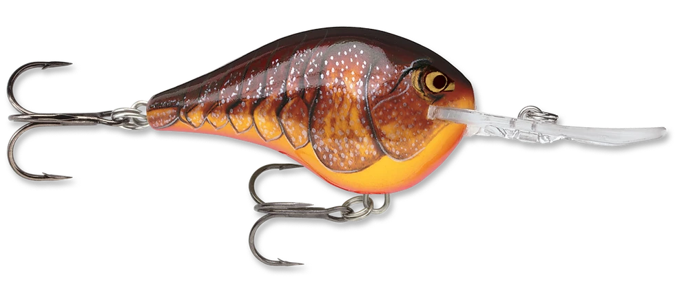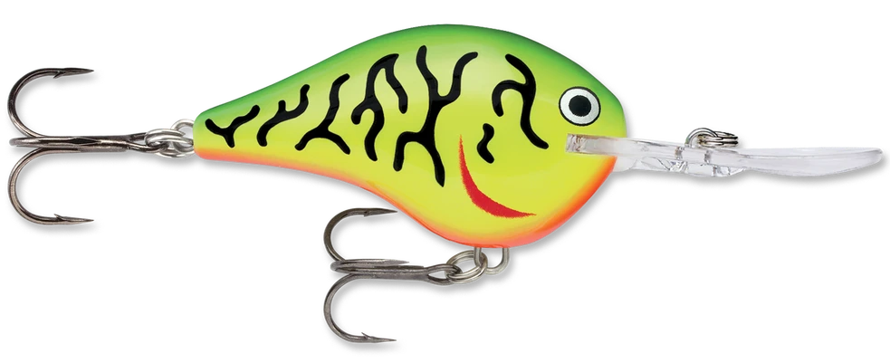 The Rapala DT10 (Dives-To) series of crankbaits dives fast to a preset 10 foot depth and stay in the “strike zone” longer than any than other crankbait on the market. Made from the top seven percent of balsa wood, this consistently perfect wood combined with carefully placed internal weights, tapered fuselage and thin tail design creates the ultimate crankbait action, found only in the DT family. Ultra-thin polycarbonate lip digs the bait down quickly to desired depth. Swimming with a side-to-side action only balsa crankbaits can achieve, the DT cranks deep, yet pulls with ease.